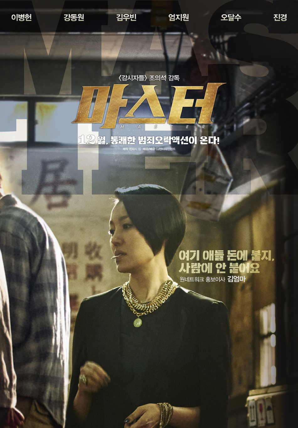 지난해 <내부자들: 디 오리지널>을 포함해 총 915만 관객을 동원한 <내부자들>을 통해 강렬한 연기로 압도적인 존재감을 발산하며 명불허전의 연기력을 다시금 입증한 이병헌이 <마스터>에서 조 단위의 사기 사건을 벌이는 희대의 사기범 ‘진회장’으로 8년 만에 악역 캐릭터를 선보인다. 변화무쌍한 면모로 팔색조의 매력을 발산할 이병헌은 <마스터>를 통해 또 한 번의 인생 연기를 선보이며 관객들을 사로잡을 것이다.