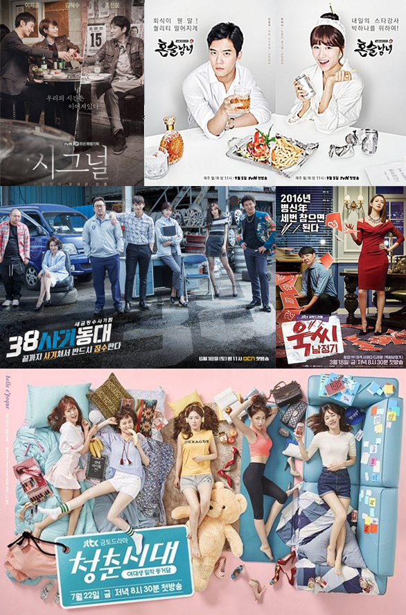 종편 채널과 케이블 방송에서 내 놓은 드라마들이 올해 특히 많은 인기를 누리면서 장르물이 드라마 흥행을 이끈 주요 화두가 되었다. tvN의 <혼술남녀>,<시그널>, <피리부는 사나이>, OCN의 <38사기동대>, JTBC <욱씨남정기>, <청춘시대> 까지. 개성있는 장르물이 넘쳐나면서 사실 드라마를 사랑하는 시청자들에게는 석택의 폭도 넓어졌다. 비록 장르물이 마니아층을 타깃으로 하고, 시청률도 대중적인 수치로 나올 수 없다는 한계가 있음에도 불구하고 올해는 이런 장르물들이 높은 화제성 지수를 기록하며 선풍적인 인기를 끌었었다. SBS에서 방영한 <원티드>도 비교적 높은 시청률과 화제가 되었던 것을 보면 장르물을 케이블 드라마로 특정 지을 필요는 없어 보이며 앞으로 지상파의 드라마들이 추세 변화를 일으킬 가능성이 있다는 것으로 조심스럽게 예측해 본다.