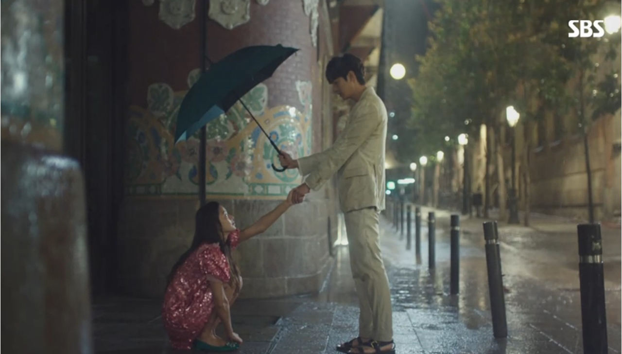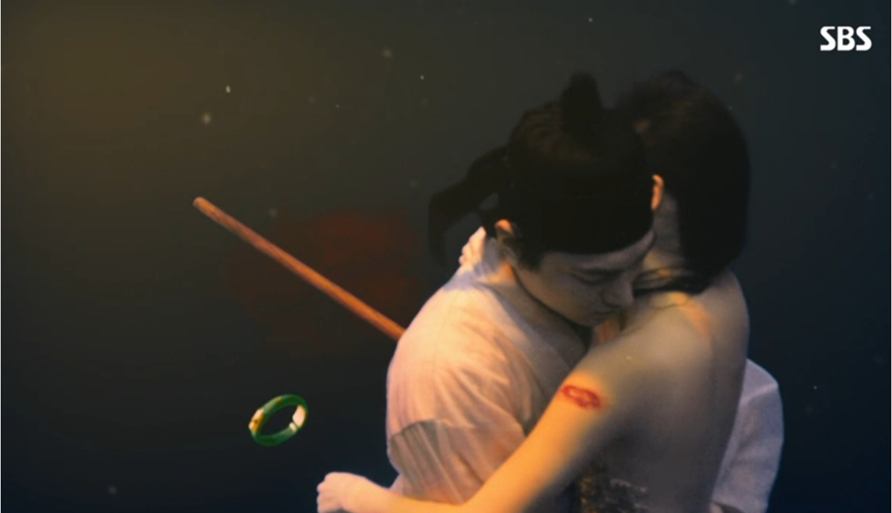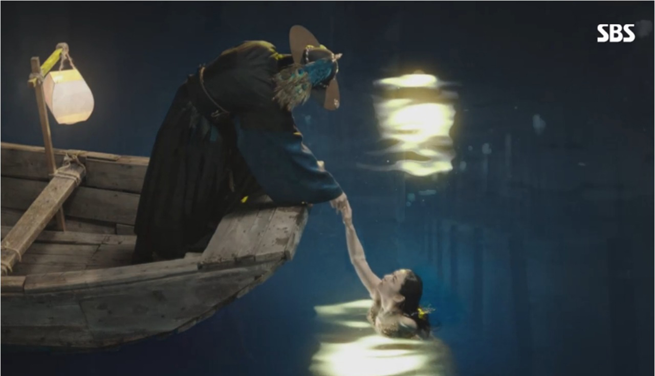 ‘사기꾼’ 준재는 스페인에서 이름 모를 여인이 ‘김담령’이라는 글자가 적힌 비취옥 팔찌를 가지고 있는 걸 보고 딴 마음을 먹었다. 준재는 그녀를 두고 도망가려다 다시 돌아왔고, 인어는 준재에게 손을 내밀었다. 그로부터 지금까지 두 사람의 인연은 계속되고 있다. 이처럼 전생과 현생을 잇는 두 사람의 악수는 첫 방송부터 묘한 찌릿함을 형성시키며 지금까지도 레전드 엔딩으로 기억되고 있다.