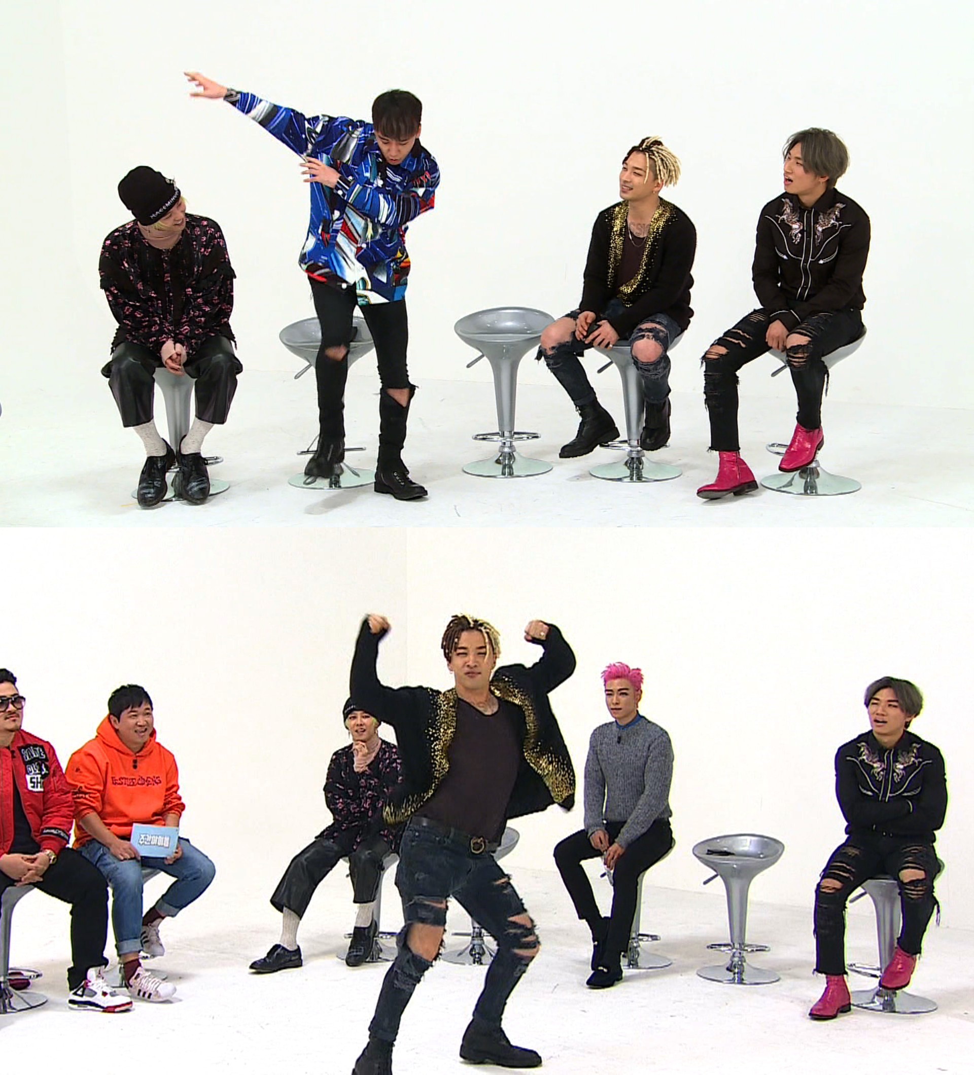 특히 래퍼 탑의 마음을 사로잡기 위해 벌어진 ‘프리스타일 랩’ 배틀에서 멤버들은 독특한 라임을 내세운 일명 ‘아무 말 랩’으로 치열한 대결을 펼쳤는데 의외로 보컬 라인인 태양, 대성, 승리의 선전이 돋보였다고, 특히 최근 탑을 위협할 만큼 발전한 랩 실력을 보여준 승리의 아무말 랩은 녹화장을 초토화 시킬 만큼 큰 웃음을 선사했다는 후문.