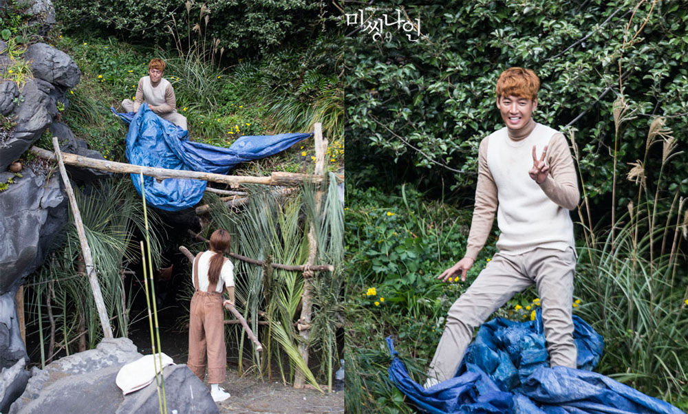 특히 정경호는 극중 한때 잘나갔던 밴드 드리머즈의 전 리더이자, 지금은 생계형 연예인으로 살아가고 있는 스타 서준오로 열연을 펼치고 있다. 이미지는 바닥, 하지만 마음만은 톱스타인 그는 무인도 속에서도 변하지 않았다. 여주인공 라봉희(백진희)와 티격태격하면서 생존과 재기에 대한 의지를 불태우는 준오의 모습은 마치 드라마판 <정글의 법칙>을 보는 듯 웃음을 자아낸다. 그렇다면 무인도 속 서준오가 아닌 정경호이 모습은 어땠을까? 허세 가득 서준오가 아닌 장난기 가득 성실한 배우 정경호의 모습을 비하인드 포토로 만나보자.