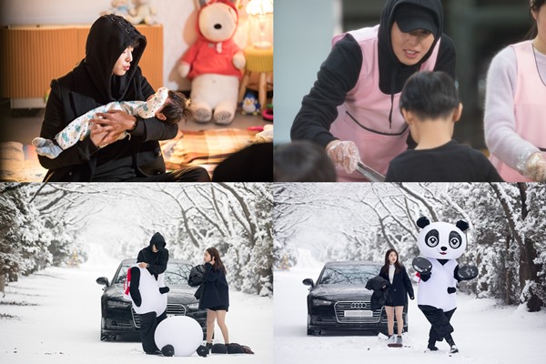 <내성적인 보스> 제작진이 방송에 앞서 공개한 6화 스틸 사진을 살펴보면 지금까지 내성적이고 소심한 연우진의 모습과는 다른 인간미 넘치는 모습들이 담겨 있어 눈길을 사로잡는다. 타인과의 스킨십을 꺼려하는 연우진이 어색한 포즈로 아이를 품에 안고 달래는가 하면, 팬더곰 탈을 쓰고 춤을 추고 있는 모습으로 웃음을 자아낸다.