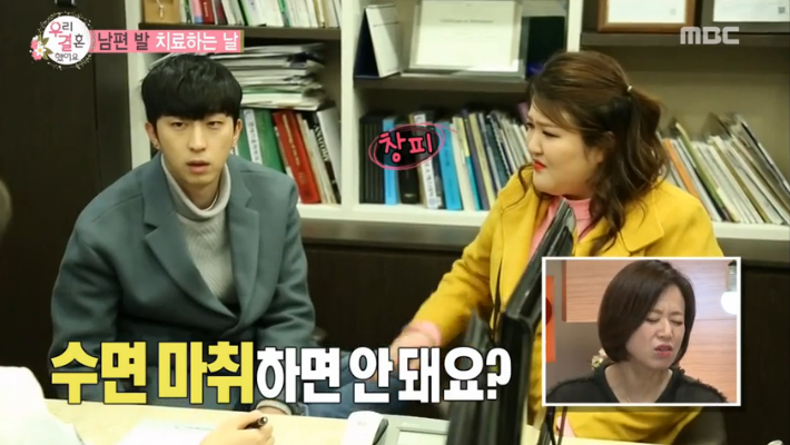 병원에 도착한 이국주는 “한 쪽 발에 티눈 7개 난 사람 봤냐?”며 간호사에게 조심스레 슬리피의 6년산 티눈을 고백했다.