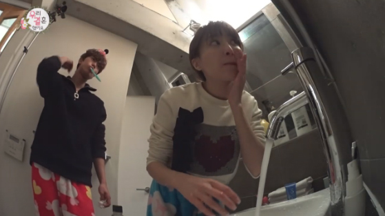이어 두 사람은 얼굴에 묻은 생크림을 닦기 위해 자연스럽게 화장실로 함께 이동했다. 세안을 하는 정혜성의 모습을 빤히 쳐다보던 공명은 인터뷰를 통해 “똑같던데요? 이뻤어요.”라며 팔불출 남편의 모습을 보였다.