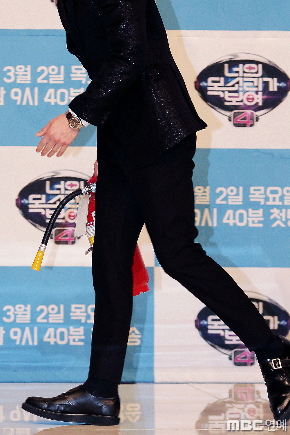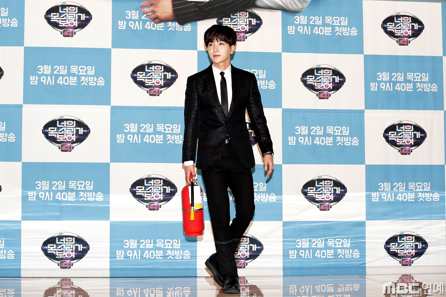 평소 연예계에서 센스있기로 소문난 MC들은 포토타임 등장부터 남달랐다. '출연자석' 표지판을 들고 등장한 유세윤에 이어 슈퍼주니어 이특은 새빨간 소화기와 함께 등장하며 웃음을 자아냈다. 소화기를 든 포즈와 위트있는 표정으로 포토타임을 뜨겁게 달군 이특. 소녀들의 심장 방화범 슈퍼주니어 리더의 <너의 목소리가 보여4> 포토타임 모습을 비하인드로 만나보자.