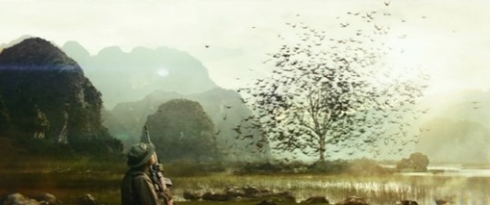 킹콩의 새로운 버전인 <콩>은 수상한 섬 스컬 아일랜드를 방문한 과학자들과 전직 군인들이 대괴수들을 만나면서 겪는 이야기를 그린 영화. <콩>에서 등장하는 고릴라는 키가 30미터에 달해 역대 킹콩들보다 무려 2배 이상을 자랑한다. 뿐만 아니라 거대 거미, 초대형 버팔로 등 초 거대 괴수들이 콩과 맞붙는다.