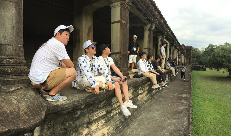 34도에 육박하는 더위 속에 ‘앙코르 톰’ ‘타 프롬’ 등을 돌아보며 투어를 힘겹게 이어가던 패키지 팀은 마침내 앙코르 유적지의 하이라이트인 ‘앙코르 와트’와 마주했다.