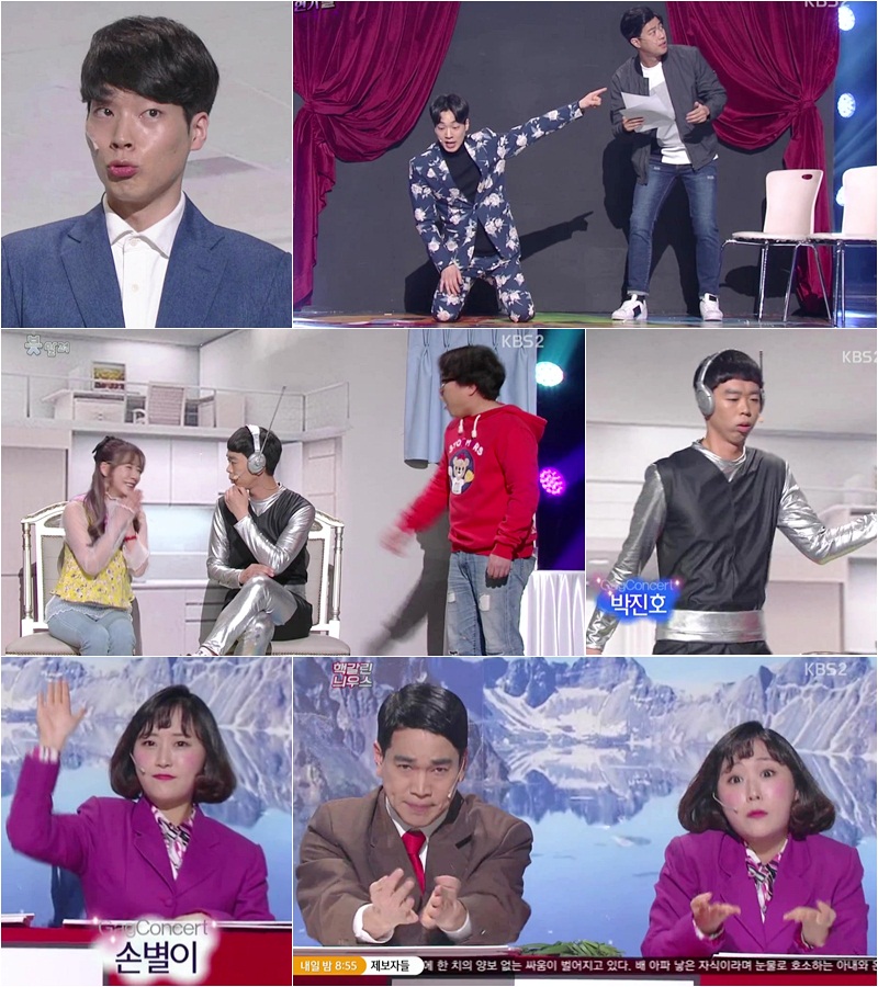 최근 활약이 두드러지는 신인 개그맨은 박진호다. 5일 첫 방송된 새 코너 ‘봇말려’에서 감정이 없는 로봇 ‘진호봇’으로 출연 중인 박진호는 주인 홍현호에게는 “연애운 없음” “기대수명 27세” 등 무미건조한 데이터들을 전달하지만 홍현호의 여자 친구 안소미의 미모에 사심을 숨기지 못하며 웃음을 주고 있다.