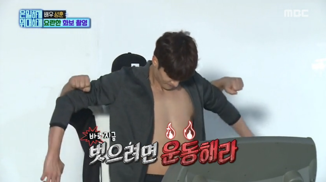 이어 성훈은 런닝머신 위에서 상의를 탈의하며 운동으로 다져진 명품 몸매를 과시해 지켜보는 이들의 탄성을 자아냈다.