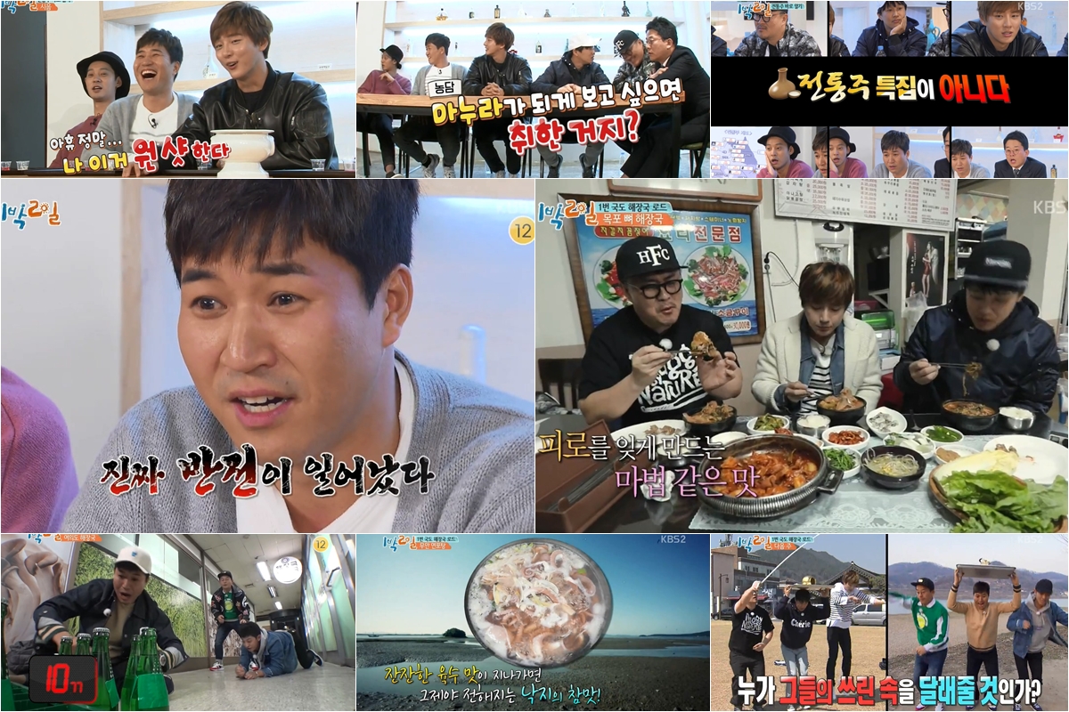 이처럼 이날 <1박 2일>은 <1박 2일>다운 반전과 각지의 다양한 전통주-해장국의 향연을 보여주며 시작된 ‘1번 국도 해장국 로드’는 시청자들에게 보는 재미를 선사하기에 충분했다.