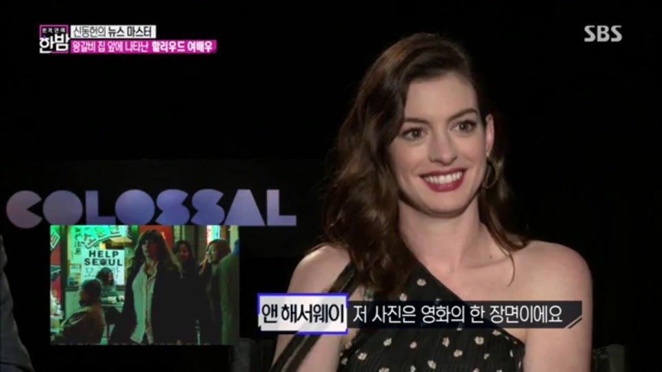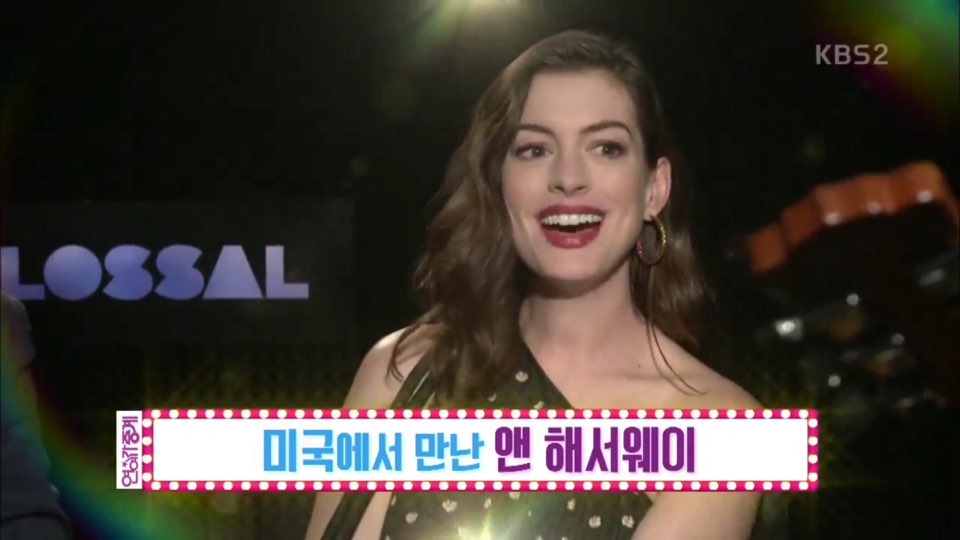 한편, 지난 주말 KBS2 <연예가중계>와 이번 주 화요일 SBS <본격연예 한밤>을 통해 LA에서 열린 <콜로설>의 프리미어 시사회 인터뷰가 공개되며 다시 한번 공중파를 장악한 <콜로설>은 앤 해서웨이의 비밀 방한 계획 발표와 미공개 한국 촬영 메이킹 영상이 공개되어 화제가 되기도 했다.