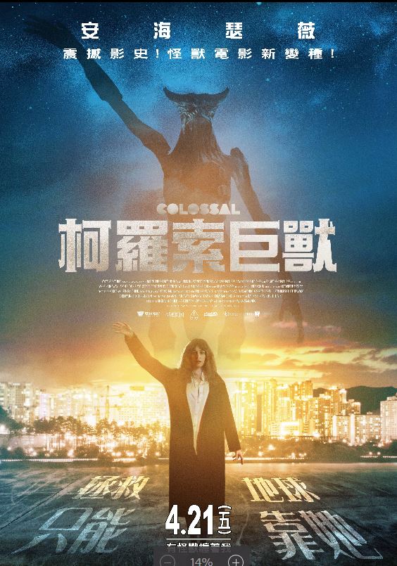 오는 4월 20일(목) 개봉을 앞둔 <콜로설>의 해외 포스터를 최근 네티즌들이 포스팅하면서 화제가 되고 있다. 영화 <콜로설>은 직장과 남자친구 모두 잃고 고향으로 돌아온 ‘글로리아’(앤 해서웨이)가 지구 반대편 서울 한복판에 나타난 괴수와 자신이 연결되어 있다는 사실을 알게 되면서 벌어지는 소동을 담은 작품.