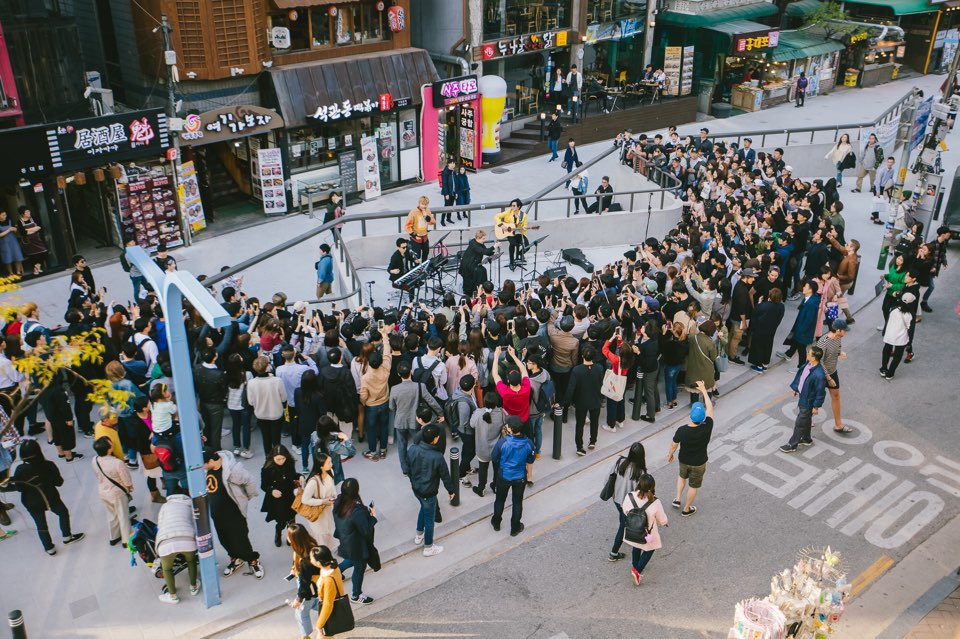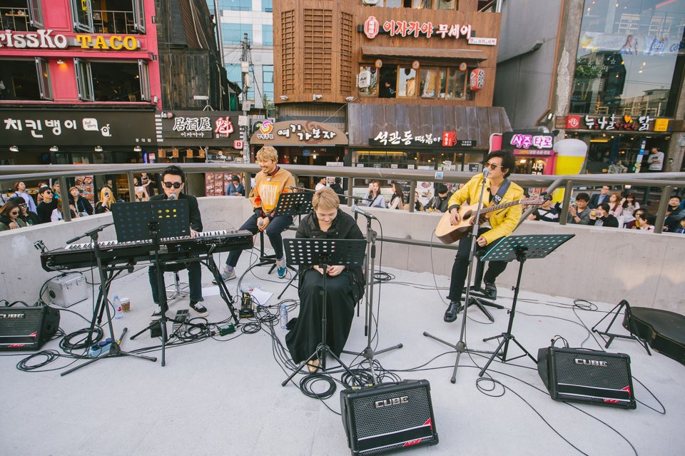 지난 24일(월) 오후 5시 홍대 앞 걷고 싶은 거리에서 특별한 공연이 펼쳐졌다. 6월 첫 방송을 앞두고 있는 JTBC 신규 예능 프로그램 <비긴어게인>의 출연진 이소라, 유희열, 윤도현, 노홍철이 깜짝 길거리 버스킹에 나선 것.