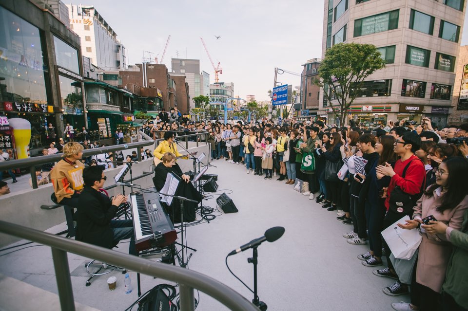 공연을 시작하기 전 네 사람은 “평일 이 시간대의 홍대거리가 한산하다”, “이렇게 즉석에서 하는 거리공연은 처음이다. 잘 될지 걱정이다”라며 긴장하는 모습을 보였으나, 시민들의 뜨거운 호응에 무사히 첫 버스킹을 마쳤다는 후문이다.