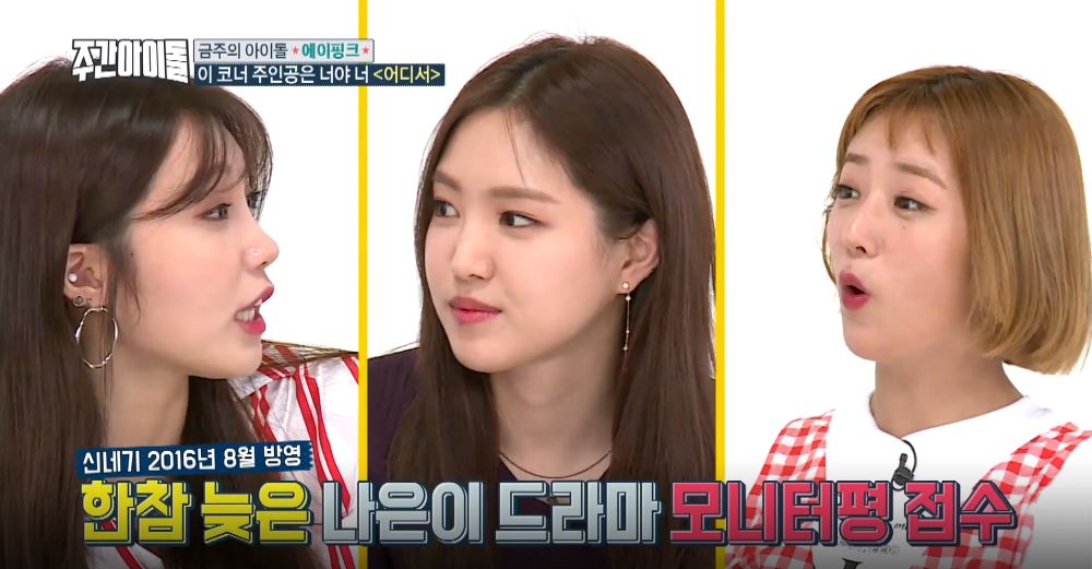 28일 방송된 MBC 에브리원 예능프로그램 <주간아이돌> 309회에서는 ‘FIVE’로 돌아온 에이핑크(박초롱, 윤보미, 정은지, 손나은, 김남주, 오하영)가 ‘금주의 아이돌’ 게스트로 출연해 상큼한 매력을 선보였다.