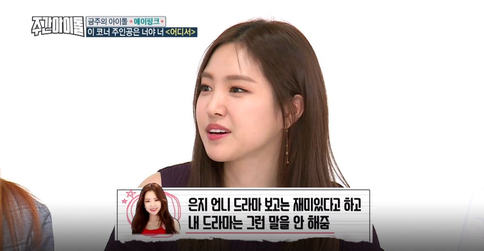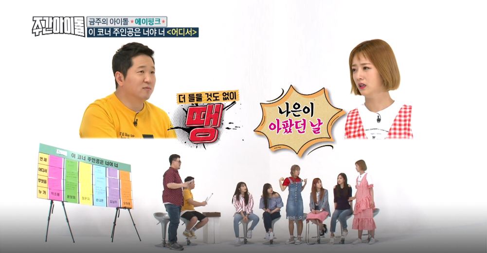 이날 에이핑크는 ‘이 코너 주인공은 너야 너’에서 손나은이 멤버들에게 서운함을 느꼈던 이유를 맞혀야했다. 먼저 정은지가 “멤버들이 자기 말에 반응을 안 해줘서”라고 하자, MC 정형돈이 “비슷했다”라고 전했다.