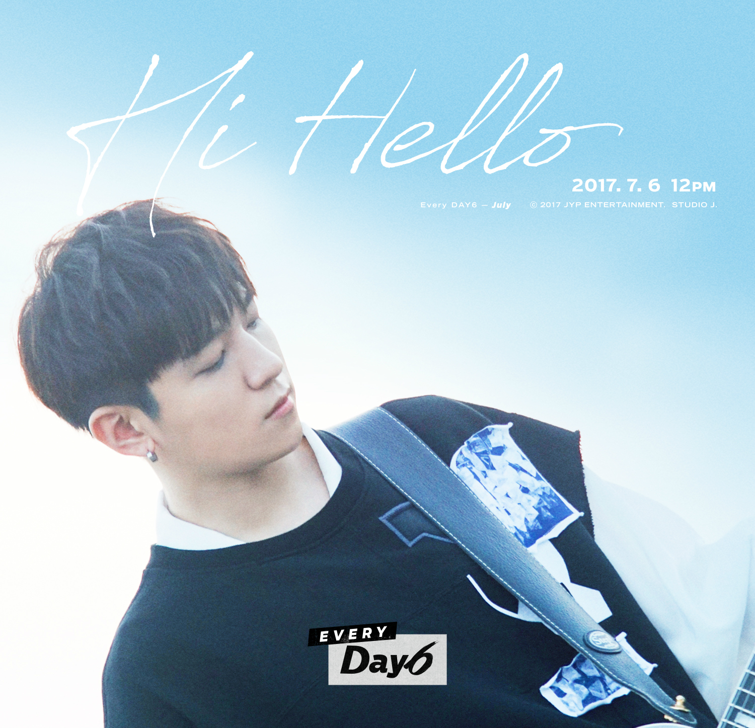해당 이미지에는 ‘Hi Hello’, ‘2017.7.6 12PM’이라는 문구가 담겨 DAY6가 7월 6일 정오 신곡 'Hi Hello'를 선보인다는 소식을 전했다. 또 푸른 하늘을 연상케 하는 배경으로 멤버 성진의 모습을 담아내 시선을 사로잡았다. 성진은 짧아진 헤어 스타일로 시원한 여름 느낌을 물씬 풍겼다.
