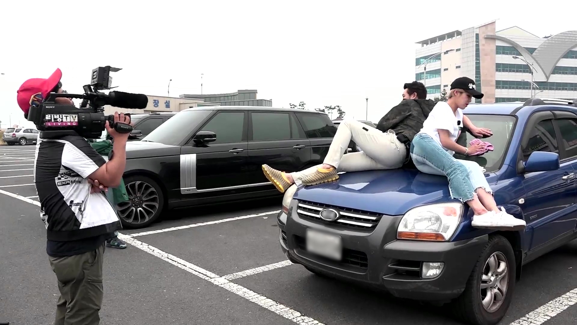 공개된 사진에는 이태곤이 꽝피디 자동차의 보닛에 올라가 장도연과 등을 맞대고 <가을동화>의 한 장면을 패러디하고 있는데, 이해할 수 없는 꽝피디의 연출 세계에 터져 나오는 웃음을 참지 못하고 있다.