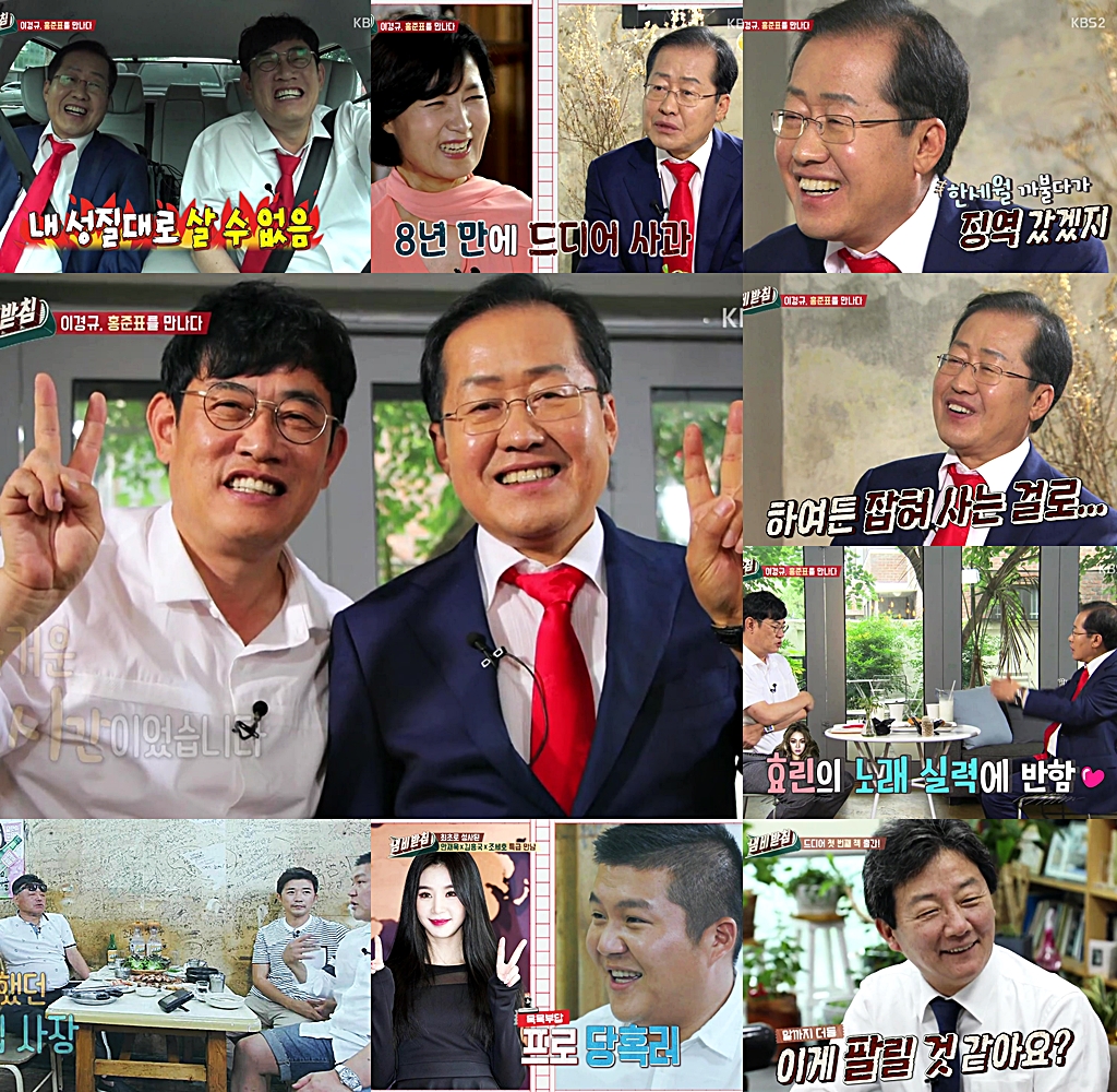 25일(화) 방송된 KBS 2TV 새 예능 <냄비받침> 8회 방송에서는 ‘이경규가 만난 리더’ 두 번째 주자로 자유한국당 홍준표 대표가 출연해 직설화법 인터뷰로 긴장 넘치는 토크를 펼쳤다.