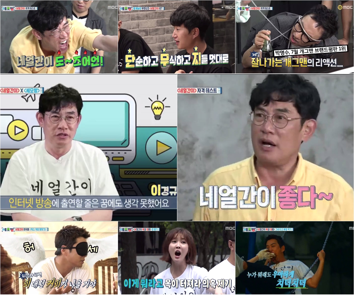 지난 12일 방송된 MBC <세모방: 세상의 모든 방송>(김명진 최민근 공동연출 / 이하 ‘세모방’)은 인기 웹 예능 <네얼간이>와 협업에 나섰다. 이경규-박명수-주상욱-이수경-산다라박가 ‘네얼간이’와의 협업을 통해 한 번도 경험해 본 적 없는 낯선 웹 예능 세계에 첫 발을 내디뎠다. 특히 데뷔 37년 만에 처음 웹 예능에 도전한 이경규는 555법칙, 단무지 법칙 등 ‘네얼간이’의 소개를 들으며 천천히 웹 예능을 파악해갔고, 누구보다 빠르게 적응해 모두를 깜짝 놀라게 만들었다.