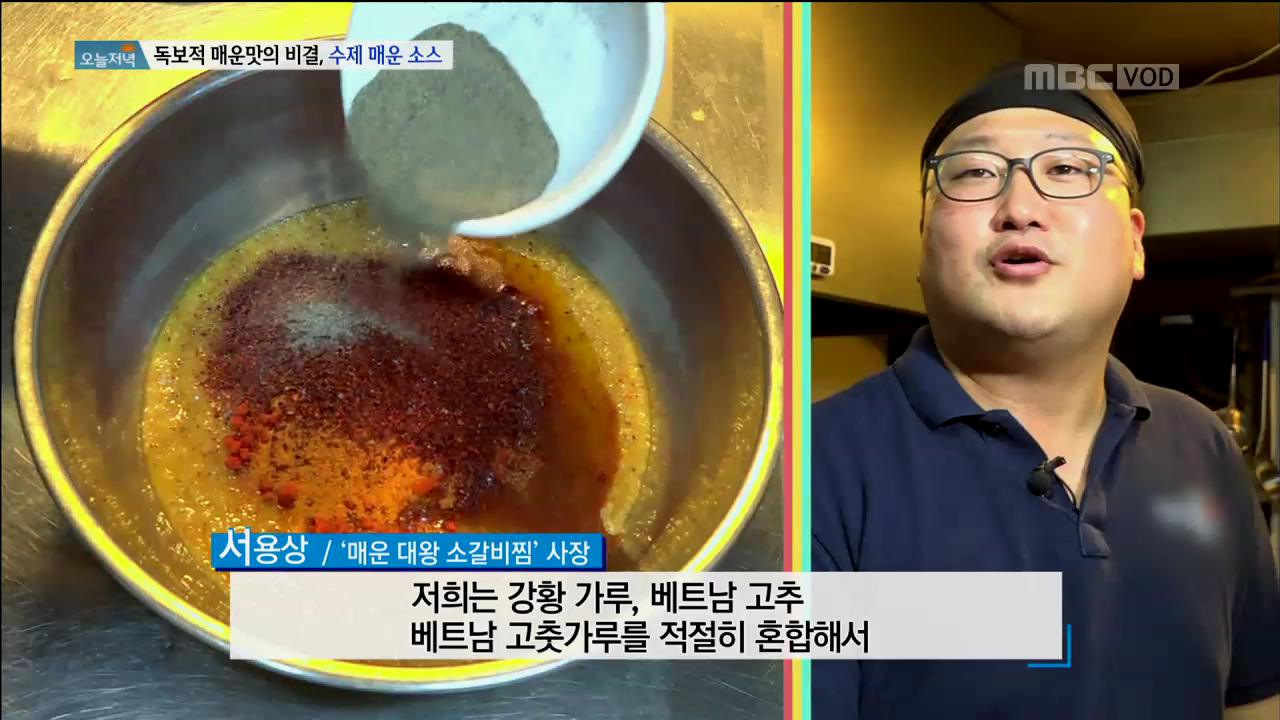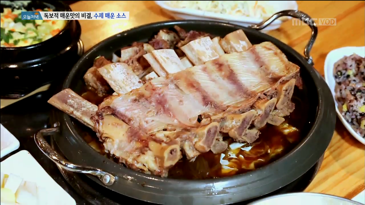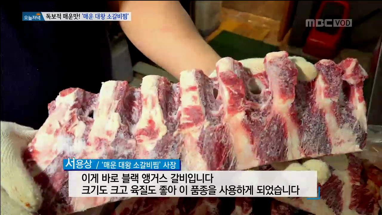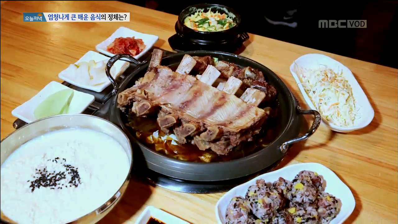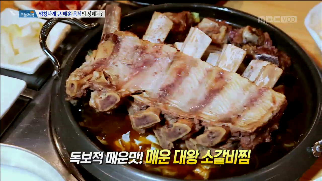 성인 얼굴만 한 길이의 기다란 갈비뼈를 뜯는 즐거움이 있는 독보적 매운맛 ‘매운 대왕 소갈비찜’.