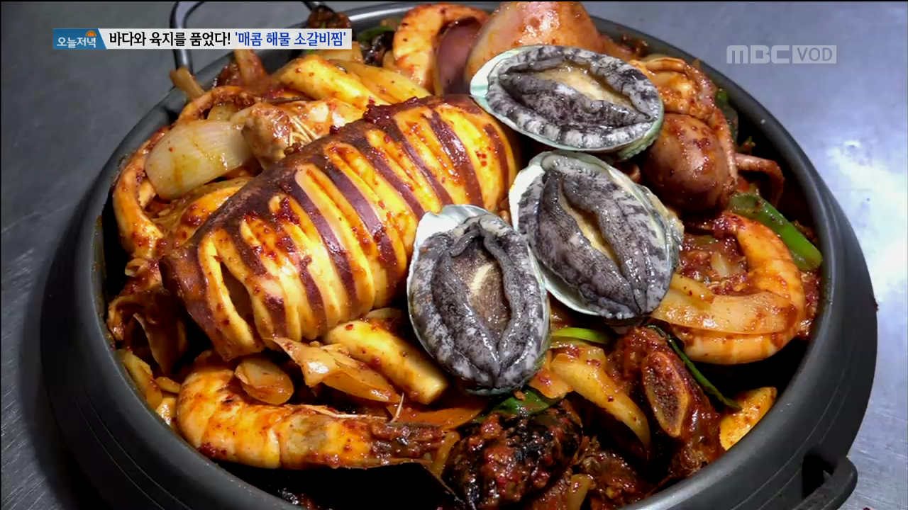 푸짐한 해산물이 쌓여있는 바다와 육지를 품은 강렬한 매운맛 ‘매콤 해물 소갈비찜’.