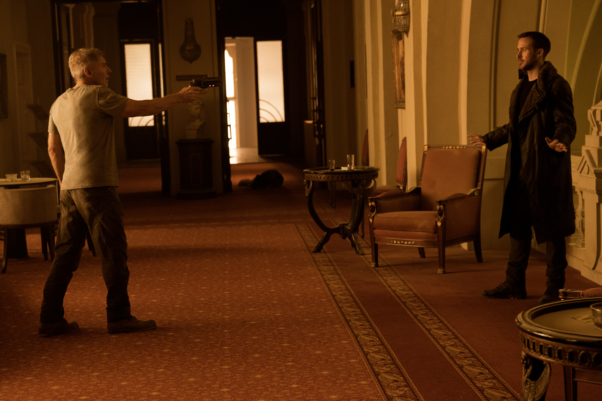 여기에 ‘릭 데커드’가 ‘K’에게 총을 겨누고 있는 스틸은 묘한 긴장감을 불러 일으키고, ‘K’와 함께 스피너(비행 자동차)를 타고 있는 ‘조이’(아나 디 아르마스)의 모습은 두 인물이 어떤 관계일지 궁금증을 자극한다.