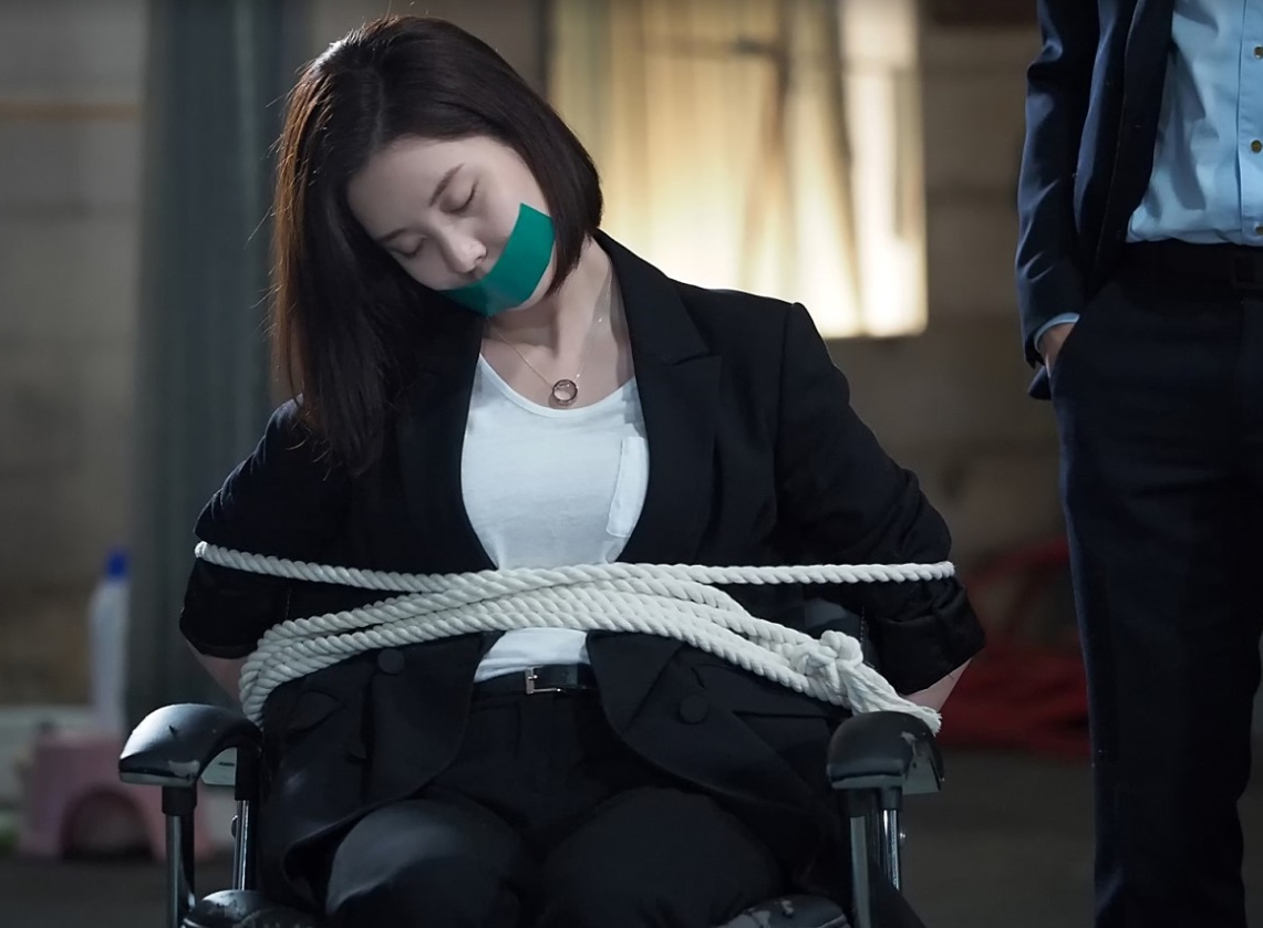 오늘 24일(일요일) 방송을 앞두고 공개된 사진 속에는 밧줄에 묶인 채 어딘가에 감금되어 있는 강소주의 모습이 담겨있다. 평소 씩씩한 검찰 수사관이었던 그녀가 의자에 앉아 축 늘어져 있는 상태에서 입은 테이프로 봉해져 묶여있는 모습은 안타까움을 자아낸다. 그 앞에 차양 넓은 모자와 선글라스, 마스크까지 착용한 윤화영이 서있어 충격을 주고 있다.