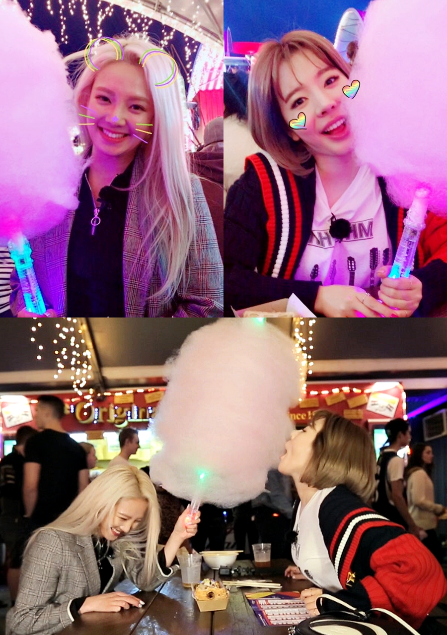 이날 써니와 효연은 ‘브리즈번 최대의 푸드마켓’인 ‘잇 스트릿(Eat Street)’ 마켓을 찾았다. ‘잇 스트릿’ 마켓은 세계 음식을 맛 볼 수 있는 야시장으로, 브리즈번에 방문하면 꼭 들려야 할 곳. ‘잇 스트릿’ 마켓을 방문한 두 사람은 눈 앞에 펼쳐진 다양한 음식의 향연에 돌고래 비명을 지르며 마켓 곳곳을 누볐다. 특히 써니는 거대한 크기의 UFO 솜사탕을 발견한 후 전력 질주를 해 폭소를 자아냈다. 또한 써니와 효연은 솜사탕의 거대한 사이즈와 신기한 비주얼에 인증샷 삼매경에 빠졌다. 두 사람은 인증샷을 찍는 내내 초롱초롱한 눈망울과 환한 미소로 발랄함을 뿜어냈다. 이 둘의 동심으로 돌아간 듯한 해맑은 모습에 보는 이들 모두 엄마 미소를 지었다는 후문이다.