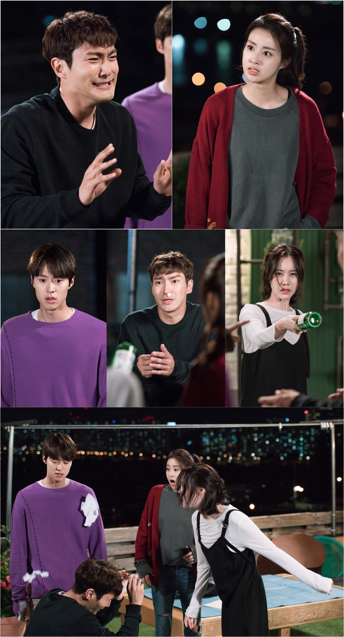공개된 사진은 사건 사고가 끊이지 않는 낙원 오피스텔에 다시 한 번 벌어진 혼돈의 현장을 포착했다. 기내 난동 사건의 피해자인 하연희(김예원 분)가 낙원 오피스텔 옥상에 나타나면서 졸지에 변혁과 대면을 하게 된 것. 술병까지 들고 눈물을 흘리며 손가락질을 하는 하연희와 마주한 변혁은 그야말로 혼비백산이다. 애걸복걸 눈물 바람으로 빌어보지만 술에 취한 하연희는 진실을 말하기 직전의 상황. 그녀가 변혁의 정체를 밝히게 될지 궁금증이 증폭되는 가운데 위기의 순간을 예감한 권제훈과 영문도 모른 채 이 상황이 당황스럽기만 한 백준의 표정도 흥미를 더한다.