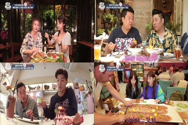 오늘(1일) 방송되는 올리브 <원나잇 푸드트립 : 먹방레이스>에서는 가수 박보람X허영지, UFC 파이터 김동현X배우 이재윤, EXID 혜린X정화, 스타셰프 레이먼킴X정호영이 취향을 저격하는 음식들에 매료돼 점점 더 먹방에 박차를 가한다. 전세계 SNS에서 핫한 '인생 음식'들을 만난 절친 스타들의 미소 가득한 먹방이 이목을 집중시킬 예정.