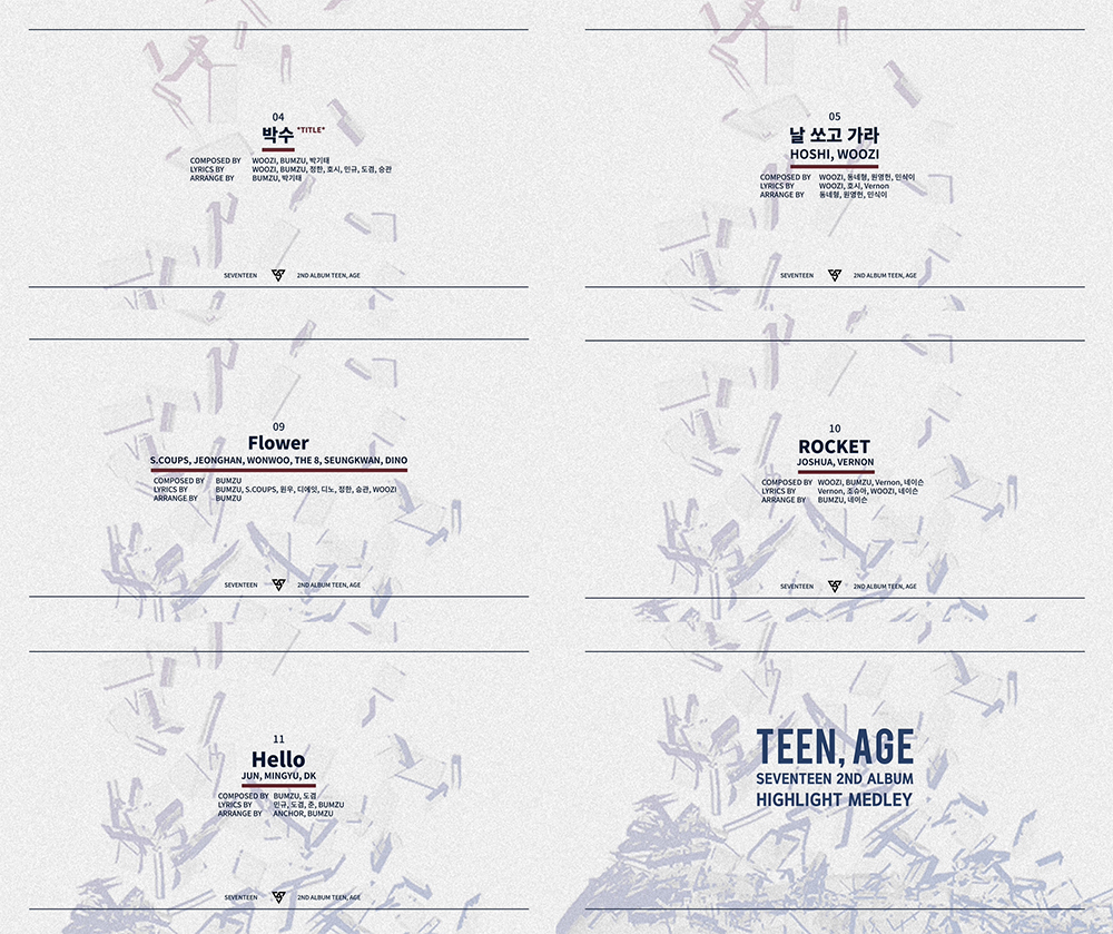 뿐만 아니라 폭발적인 관심과 궁금증을 불러일으켰던 새로운 조합의 믹스 유닛 곡인 ‘날 쏘고 가라’, ‘플라워(Flower)’, ‘로켓(ROCKET)’, ‘헬로(Hello)’는 이번 하이라이트 메들리를 통해 짧지만 귀에 쏙 박히는 멜로디로 본 곡에 대한 기대감을 더욱 끌어올릴 수 있었다. 또한 콘셉트 포토 등으로 두 번째 정규앨범에서 새로운 변화를 예고하고 있는 세븐틴이 하이라이트 메들리로 다양한 장르와 색다른 느낌의 13곡을 선사해 새 앨범을 기다리는 팬들의 마음을 설레게 하고 있다.