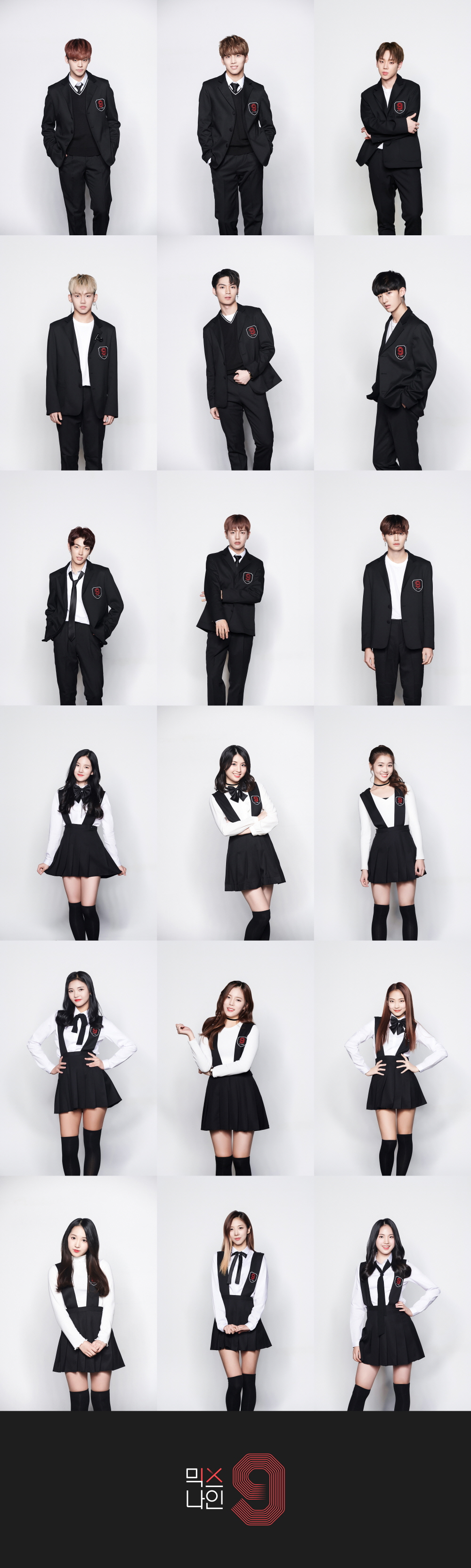 9일(목) <믹스나인>의 공식 페이스북 페이지를 통해 공개된 프로필 사진은 쇼케이스에서 선보인 WM엔터테인먼트 소속 남자 센터 김효진과 페이브엔터테인먼트 소속 여자 센터 이수진을 비롯해 치열한 기획사 투어 오디션을 통해 선발된 170명 전원이다.