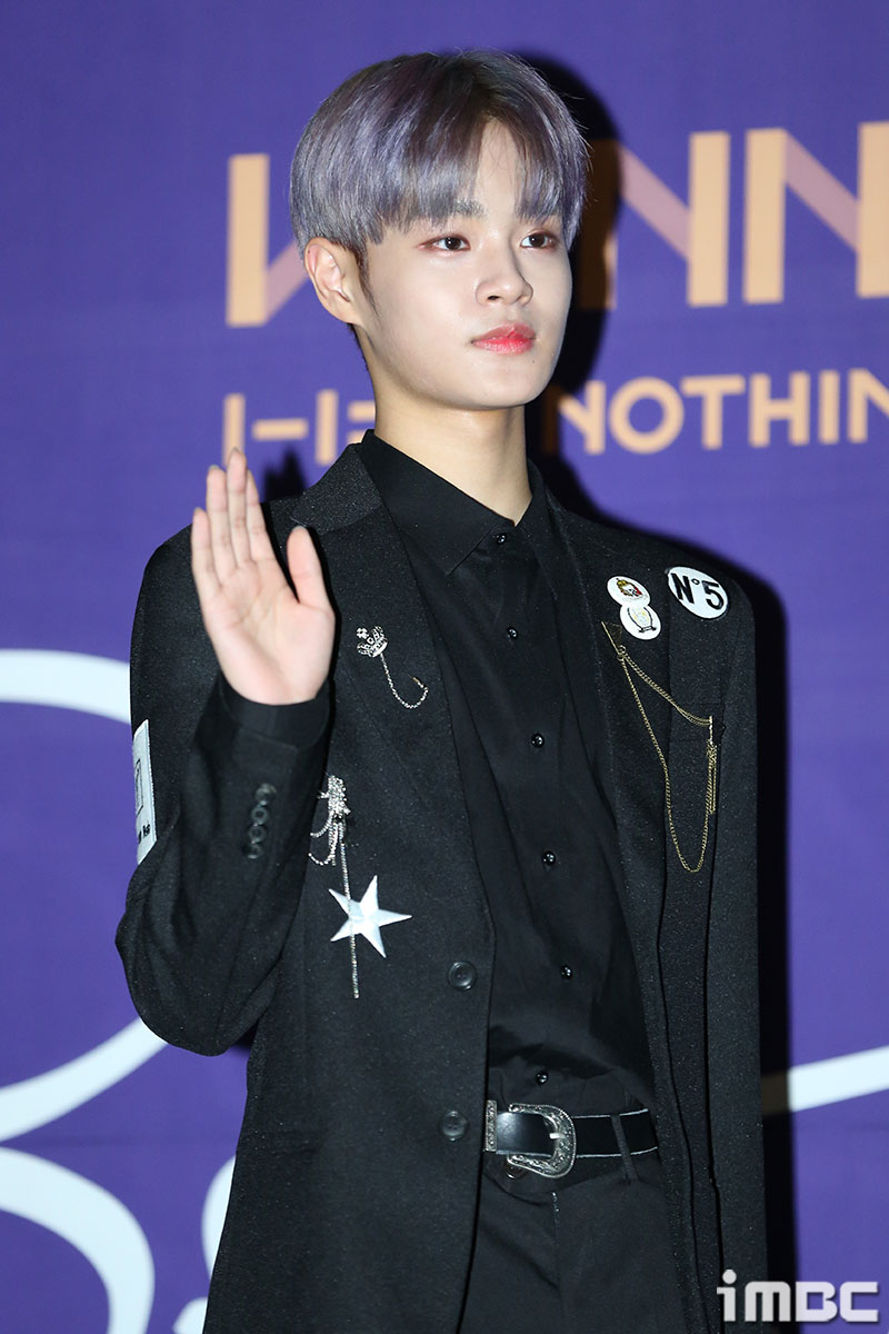 이날 행사에 참석한 워너원이 포토타임을 갖고 있다.
