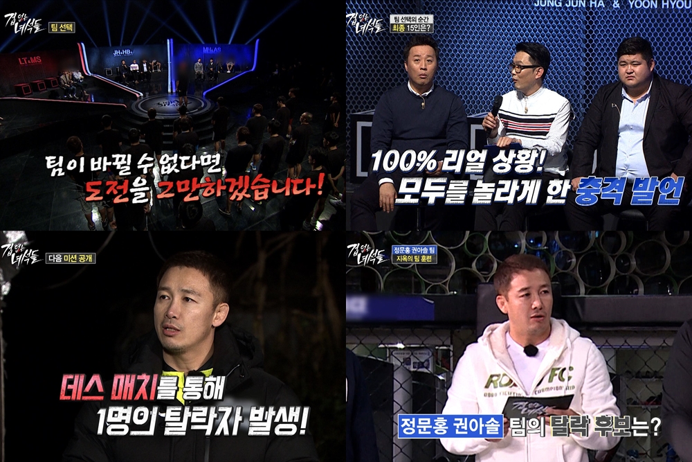 또한, 이날 방송에서는 팀 선택을 마친 세 팀의 첫 훈련 현장은 물론, 팀 내 데스 매치를 통해 탈락할 첫 번째 도전자가 공개될 예정이다. 과연 팀 내 데스 매치를 통해 탈락하게 될 첫 번째 도전자는 누가 될 것인지 본방송에 대한 기대감을 높였다.