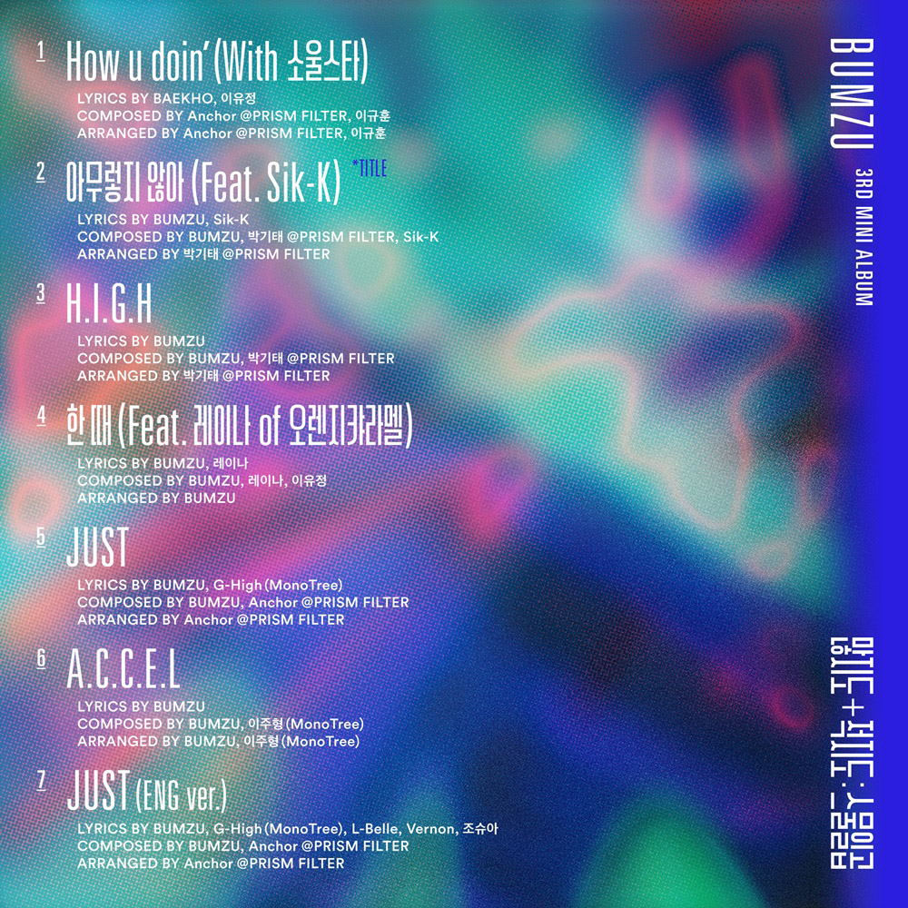 또한, 앨범의 첫 번째 트랙에 수록되어 미니 3집의 시작을 알리는 ‘How u doin'’은 그룹 뉴이스트 W의 백호가 작사에 참여해 눈길을 끌고 있으며, 감성 R&B 그룹 소울스타가 함께하는 등 새 앨범에 대한 궁금증을 불러일으키고 있다.