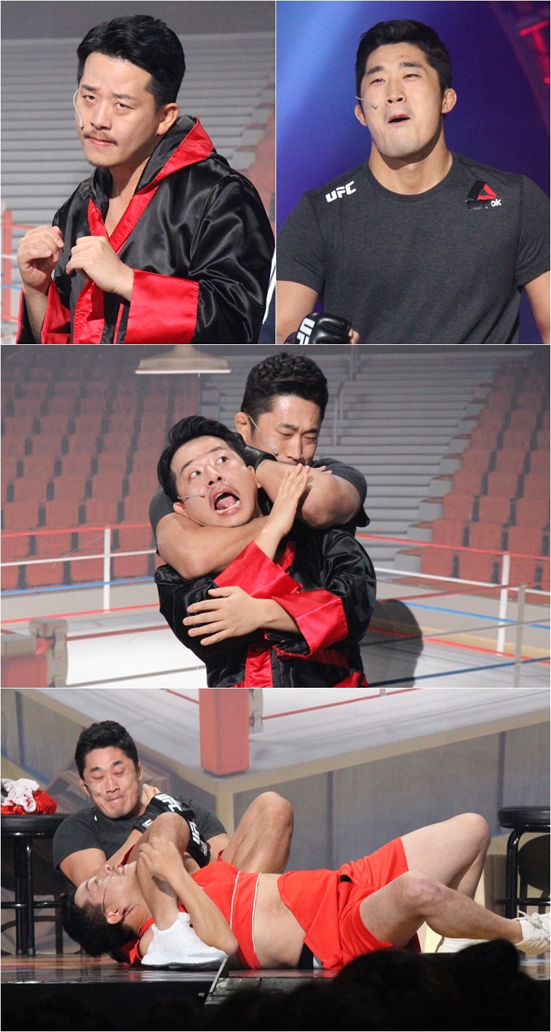 이에 김준호는 김동현과의 대결을 끝마치고 걸어서 공개홀을 빠져나갈 수 있을지 관심이 집중되는 가운데 김준호와 김동현의 세기의 대결(?)이 펼쳐질 오는 21일(일) 방송에 기대가 수직 상승된다.