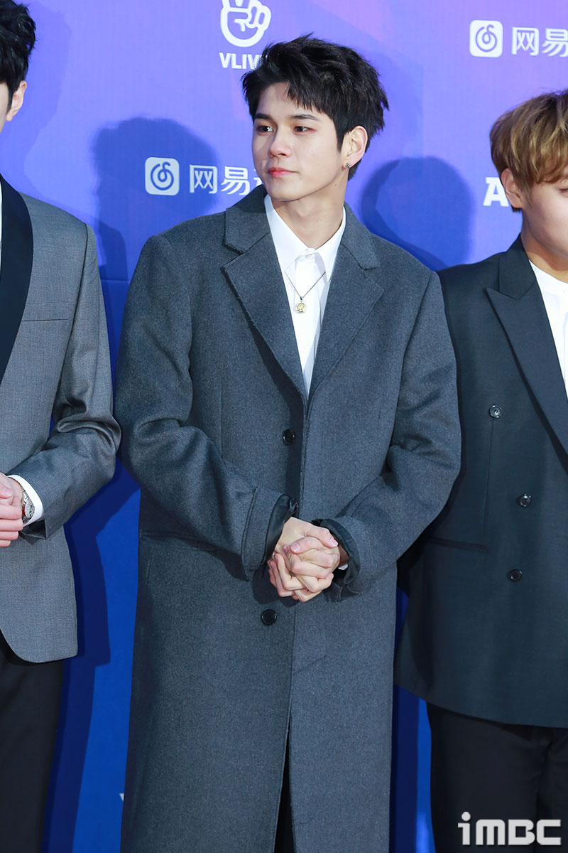 이날 행사에 앞서 진행 된 레드카펫에서 아이돌그룹 워너원이 포토타임을 갖고 있다.