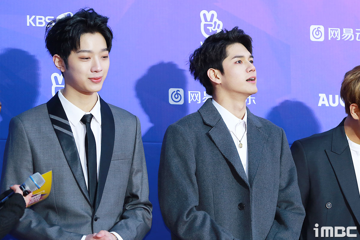 이날 행사에 앞서 진행 된 레드카펫에서 아이돌그룹 워너원이 포토타임을 갖고 있다.