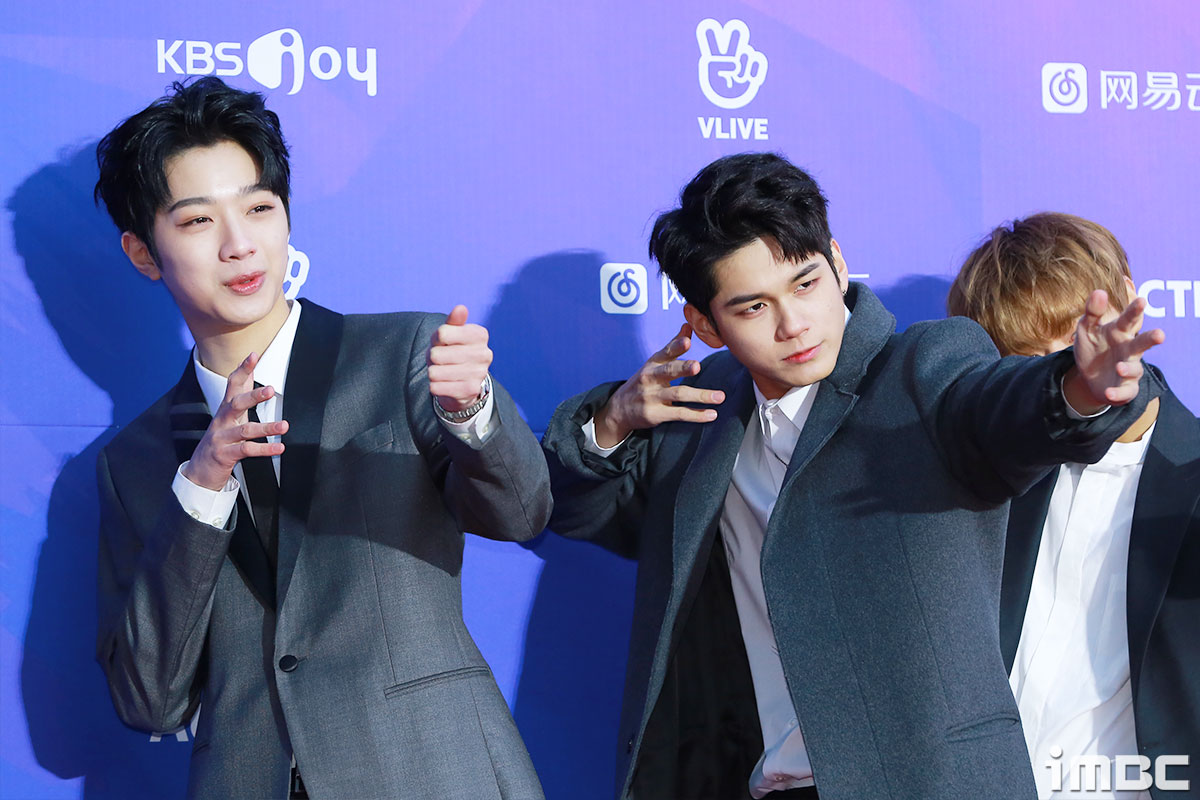 이날 행사에 앞서 진행 된 레드카펫에서 아이돌그룹 워너원이 포토타임을 갖고 있다.