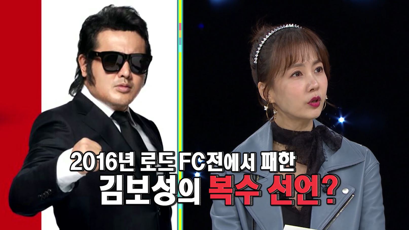 ‘피니시 윤’으로 화려하게 컴백한 개그맨이자 이종격투기 선수 윤형빈이 2016년 로드FC에서 패한 김보성을 위해 복수를 선언했다. MMA 프로 경기를 17번 치른 콘도 테츠오 선수와의 경기를 벌였던 김보성에 윤형빈은 “선전하셨지만 아쉽게 눈을 맞으면서 패했다”며 안타까운 마음에 복수를 하고 싶다는 의사를 내비쳤다. 하지만 그 소식을 들은 김보성이 윤형빈을 뜯어말리며 “네가 이기면 내가 뭐가 되니?”라고 말해 주변 사람들을 웃프게 만들었다. 김보성은 자신이 콘도 테츠오 선수와 리벤지전에서 이긴 후 나가는 건 상관이 없다며 “그 전까지는 절대 안 된다”라고 말해 사연을 들은 이들의 웃음을 자아냈다.