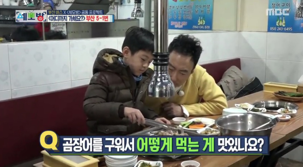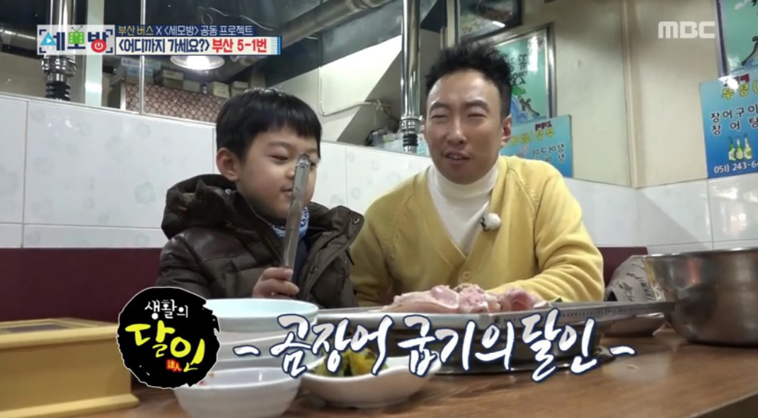 “어떻게 구워야 해?”라며 난감해하는 박명수 앞에서 곰장어가게의 염승헌 소년은 말없이 껌 씹으면서 곰장어를 뒤집었다. “일곱 살 짜리가 구워주는 곰장어 먹게 됐다”라는 박명수 말에 소년은 “여덟 살!”이라고 정정했다.