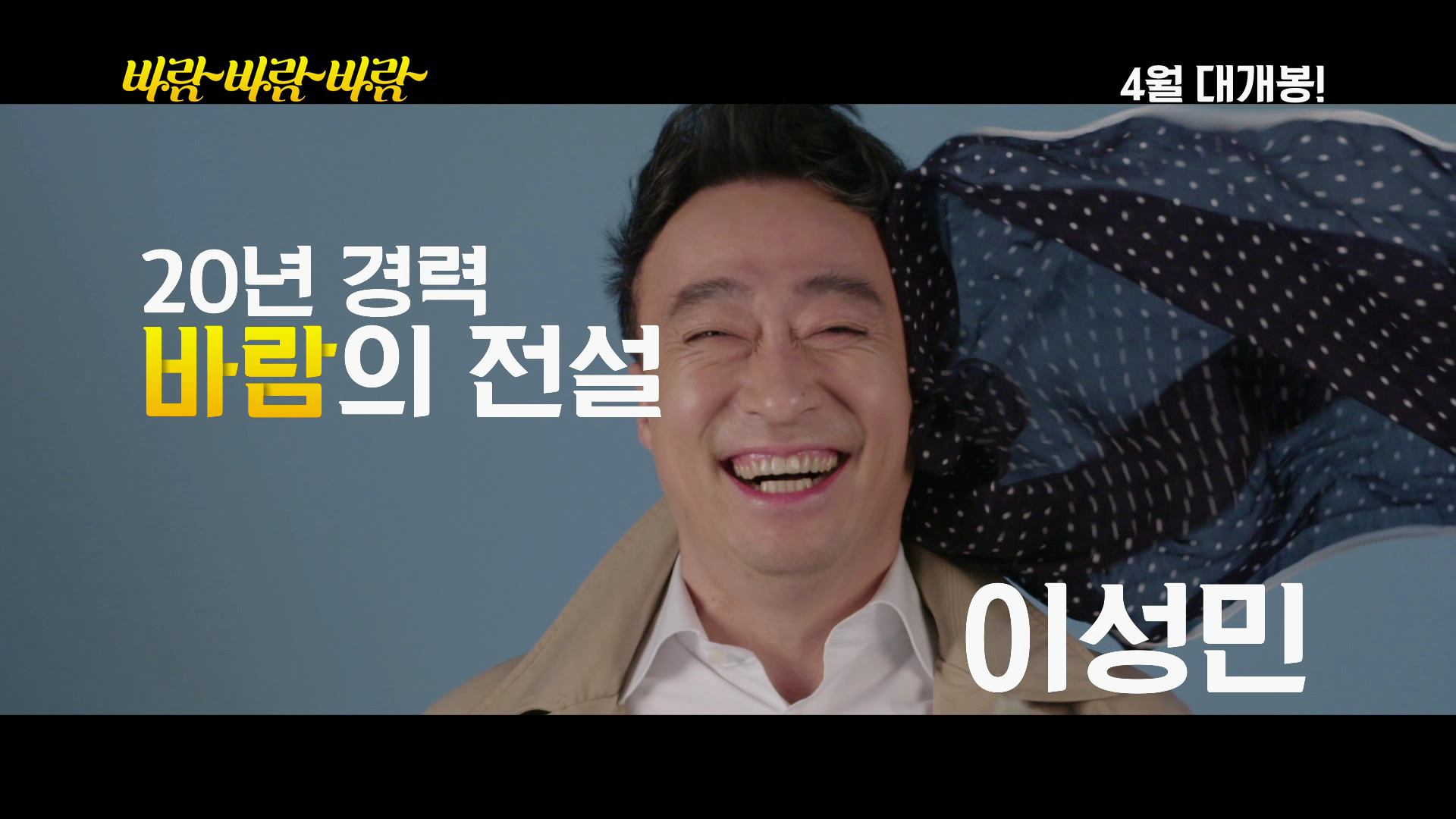 한편, 개봉 확정과 함께 보기만해도 빵 터지는 티저 예고편이 공개돼 이목을 집중시킨다. 먼저 “우리 모두는 누군가의 바람이었다.”는 카피가 등장, 이에 우아한 음악이 더해져 카피의 진짜 의미에 궁금증을 더한다. 이어 영화 속 주요 캐릭터들이 바람을 맞고 있는 모습으로 유쾌하게 오프닝을 연다. 바람에 스카프가 날아가고 있음에도 치아를 드러내며 환히 웃고 있는 ‘석근’(이성민)의 모습에 “20년 경력 바람의 전설”이라는 카피가 더해져, 오는 바람 가는 바람 막지 않는 베테랑 카사노바 ‘석근’만의 능청스러운 매력을 엿볼 수 있게 한다. 여기에 바람을 즐기고 있는 ‘봉수’(신하균)와 “어쩌다 보니 바람의 신동”이라는 카피는 그가 뒤늦게 바람의 세계에 입문하면서 자신감을 얻는 인물임을 보여준다. “태풍도 막는 바람막이”와 함께 등장하는 못마땅한 표정의 ‘미영’(송지효)은 남편 ‘봉수’의 늦바람에 제동을 걸 것으로 보여 궁금증을 고조시킨다. “철벽도 무너뜨리는 바람의 여신”인 ‘제니’(이엘)의 모습은 모든 남자들의 바람다운 면모로 팜므파탈의 탄생을 예고해, 이 모든 관계를 뒤흔들 ‘제니’의 활약을 기대케 한다. 이어 빨간 딱지(?)로 가려진 무언가를 들고 있는 아내 ‘담덕’(장영남)에게 “입을라고 샀어”라며 변명하는 ‘석근’, 자신을 향해 코트 안쪽을 보여주고 있는 ‘제니’를 보며 “어머나!”라고 놀라는 ‘봉수’의 모습 등은 지금껏 본 적 없는 차별화된 코미디를 보여줄 것으로 기대를 모은다. 이처럼 서로 다른 매력의 캐릭터 4인방이 뿜어낼 코믹 케미와 이들의 얽히고 설킨 관계는 예측불허의 즐거움을 선사할 것이다.