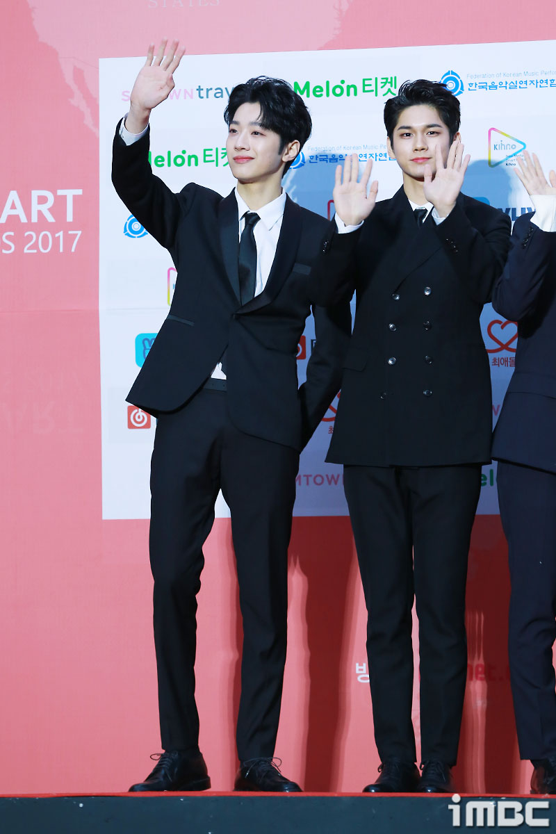 [포토] '가온차트어워드' 라이관린-옹성우, 팬서비스까지 잘빠진 슈트자태