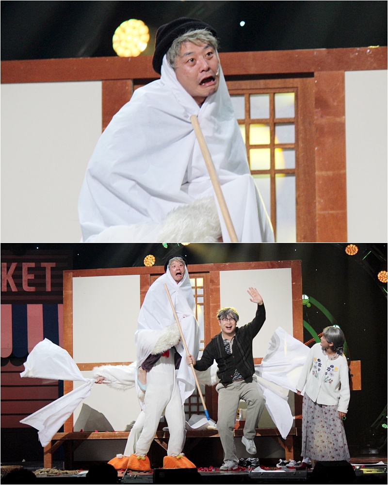 이에 공개된 스틸 속에는 ‘인면조’로 완벽 변신한 김준호의 모습이 담겨 있어 시선을 제대로 강탈한다. 김준호는 하얀 천을 온 몸에 휘감은 채 목마를 타고 있는 모습. 김준호는 인면조의 거대한 피지컬까지 완벽하게 따라 하며 남다른 존재감을 발산하고 있다. 김준호의 모습은 강렬한 비주얼로 온 국민의 뜨거운 관심을 받으며 화제가 된 인면조의 첫 등장을 떠오르게 해 보는 이들을 웃음 짓게 만든다.
