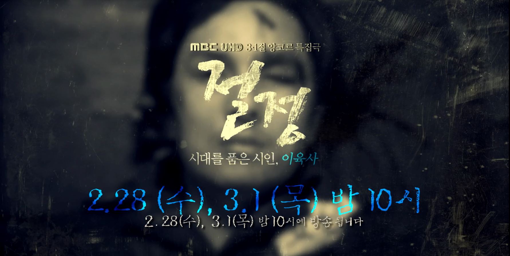 이번 ‘절정’의 UHD버전 특별 편성에 대해 MBC UHD제작팀은 “3·1절 99주년을 맞아 좋은 세상을 꿈꾸며 삶을 바친 시인의 삶이 아직도 시사하는 바가 크다고 생각한다”라며 “좋은 작품에 시청자들의 많은 관심과 애정을 부탁드린다”고 전했다.