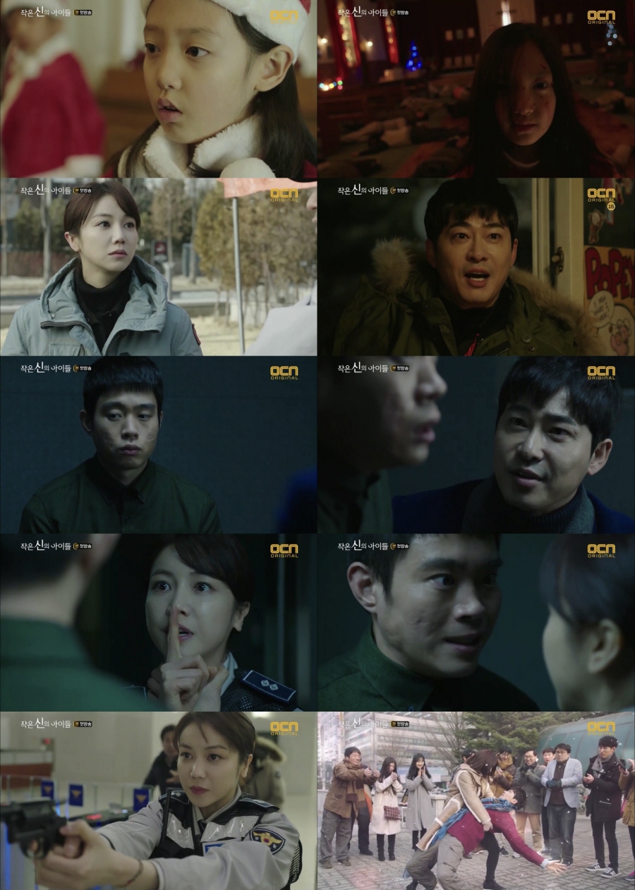 장르물 명가 OCN의 2018년 첫 번째 오리지널 드라마 ‘작은 신의 아이들’ 1회 방송은 1994년으로 거슬러 간 첫 장면부터, 복지원에서의 대규모 공연 중 “서른하나가 빨개…”라고 말한 어린 김단(한서진)이 왕목사(장광)로부터 ‘귀신 쫓는 사역’을 받던 중 “서른하나를 죽이는구나, 네놈이… 무고한 피를 흘리고, 나라의 임금을 바꾸려 하는구나”라고 섬뜩하게 외치는 장면까지 소름을 유발했다. 이어 공포로 얼룩진 어린 김단의 등 뒤로 전대미문의 참사 현장이 그려져 시청자들을 충격의 도가니로 몰아넣었다.