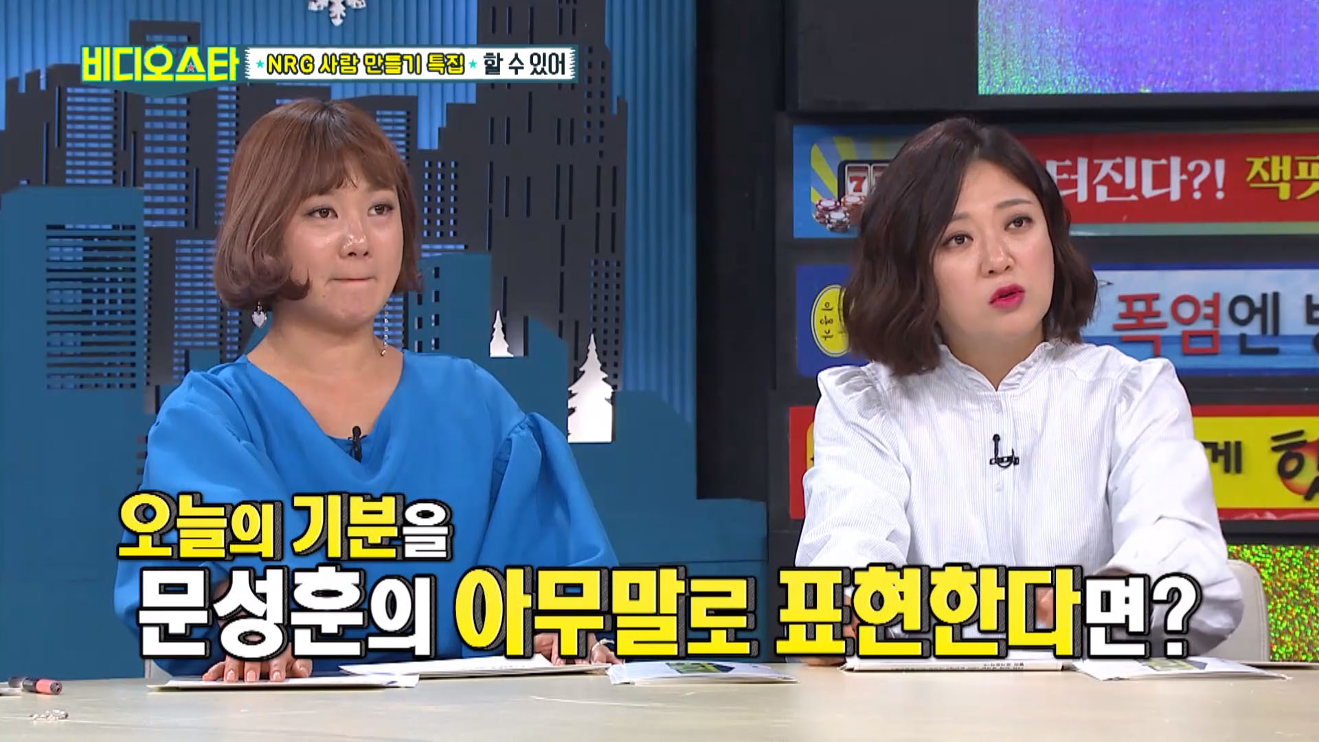 박소현이 “문성훈씨는 지금까지도 많이 이상하다~”라고 하며 “문성훈씨는 지금까지도 의미를 알 수 없는 언어를 한다고 밝혀주셨는데 이게 무슨말일까요?”라고 물었다.