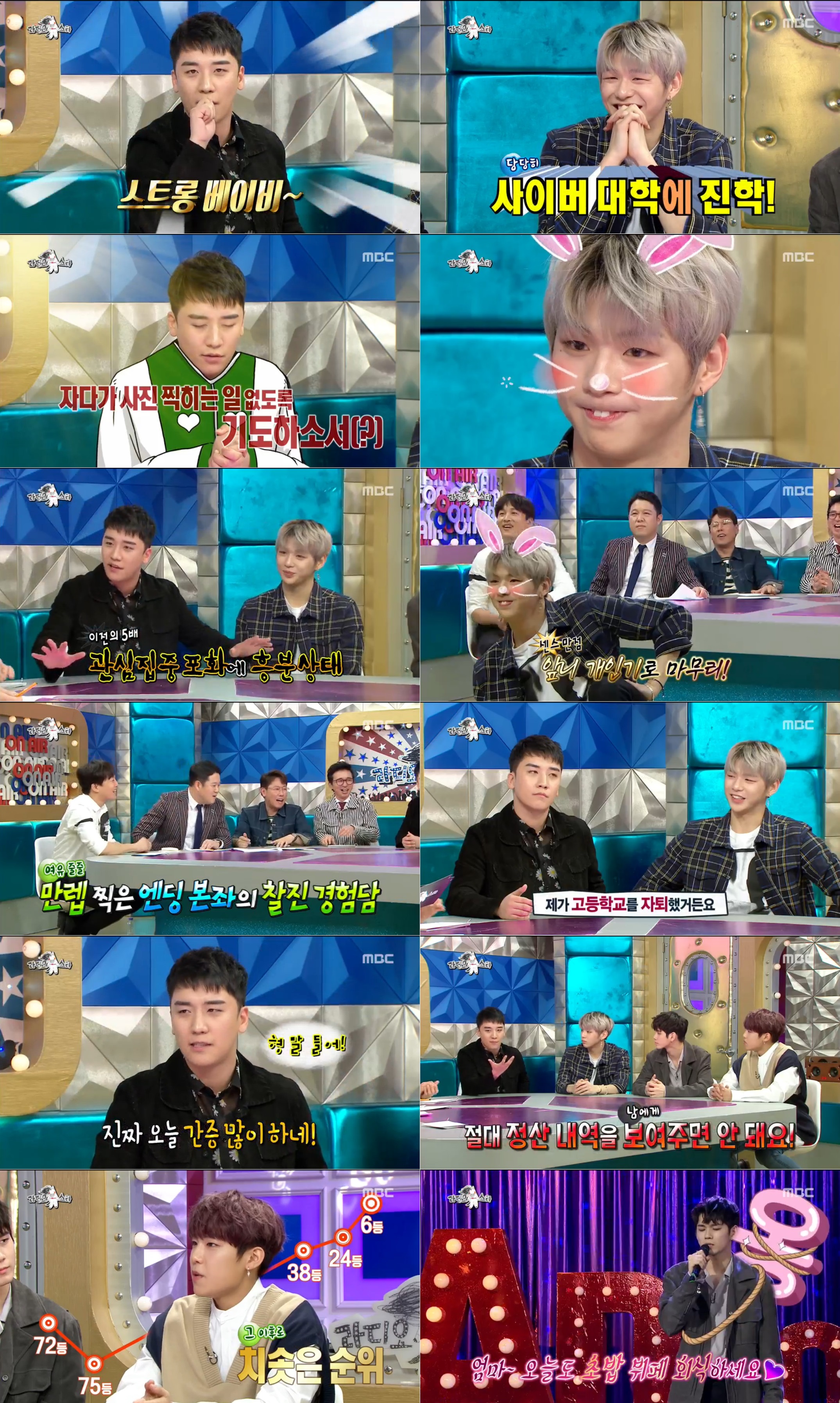 지난 21일 방송된 고품격 토크쇼 MBC ‘라디오스타’(기획 김구산 / 연출 한영롱)는 대한민국을 넘어 세계적으로 인기를 얻고 있는 빅뱅의 멤버 승리와 현재 대한민국에서 가장 핫 한 아이돌 그룹 워너원의 강다니엘-옹성우-박우진이 ‘오늘밤 스트롱 베이비는 나야나’ 특집으로 뭉쳐 새롭고 재미있는 모습들을 보여줬다.