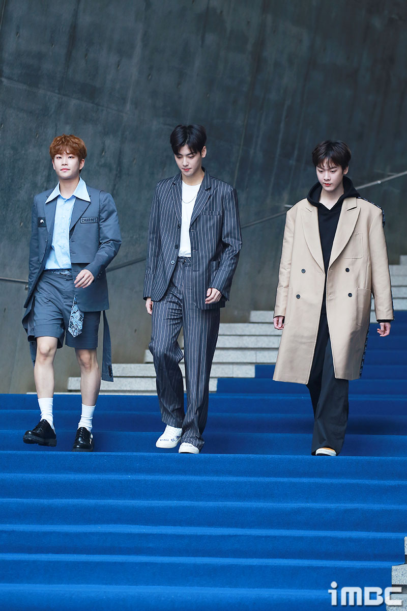23일 오후 서울 동대문 디자인플라자(DDP)에서 개최된2018 F/W 헤라서울패션위크 '참스(CHARM'S)' 쇼에 보이그룹 아스트로 MJ, 차은우, 윤산하가 셀럽으로 참석 했다.